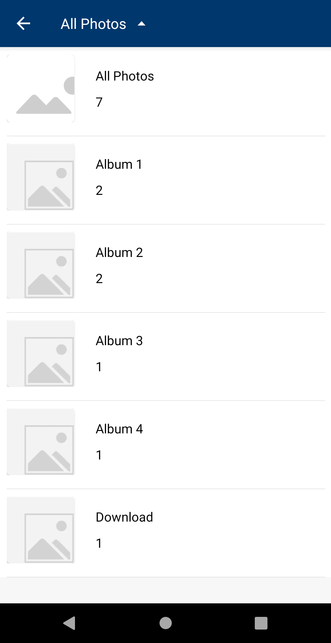 If I understand correctly, Album 1/Album 2/etc/Download are folders directly under /sdcard/? Or at any level under /sdcard/? And All Photos shows all pictures from all folders under /sdcard/ (recursively)?