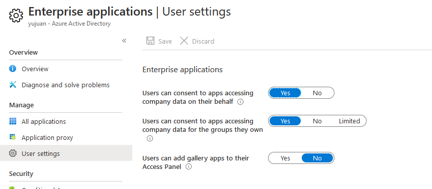 @atcaoyufei There are certain permissions that require admin approval only. For example in below screenshot, the permissions where admin consent required is set to 'Yes' would not accept user consent. Only the permissions where admin consent required is set to '-' can be consented by users.