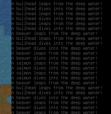 The "A fish leaps from the deep water!" messages can be very spammy, and are relatively useless as the player generally doesn't care to be notified every time a fish jumps.