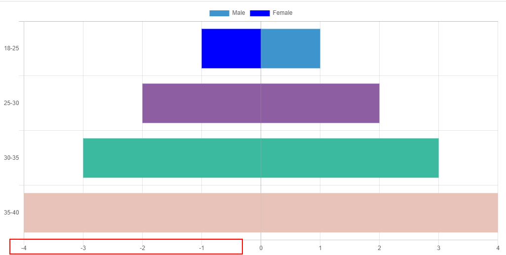 Please help me to create a horizontal population chart, I tried to create one but it is showing me - [Negative] and + [Positive]