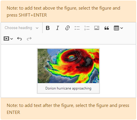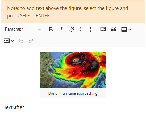 Also, I think when a user clicks on image caption and hit enter, it should result in a new paragraph. Maybe, this can be a quick fix for images while the best solution is being decided on.