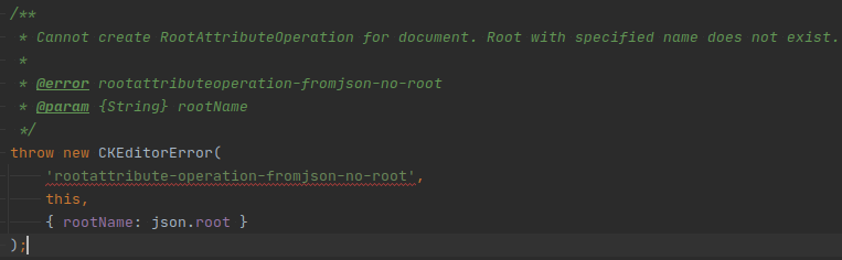 'error-id: Error message' vs 'error-id'聽@error definition with multiple throws (ie case for marker-destroyed). If it is in the context of the same file it might be easy to find defintion - however cumbersome. Having a rule that for every CKEditor we must have @error annotation in comment might be easier to implement.We can remove the message if we'll focus on making the ids clearer. And the documentation should clearly explain what was wrong and how to do that right (if possible).
