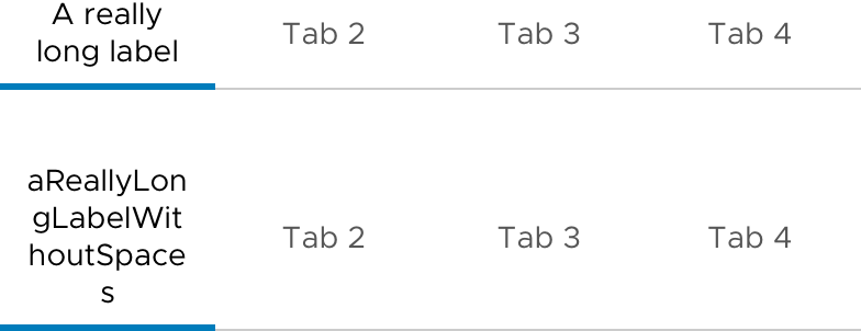• A minimum of 12 px padding is applied to the left and right of each tab label.