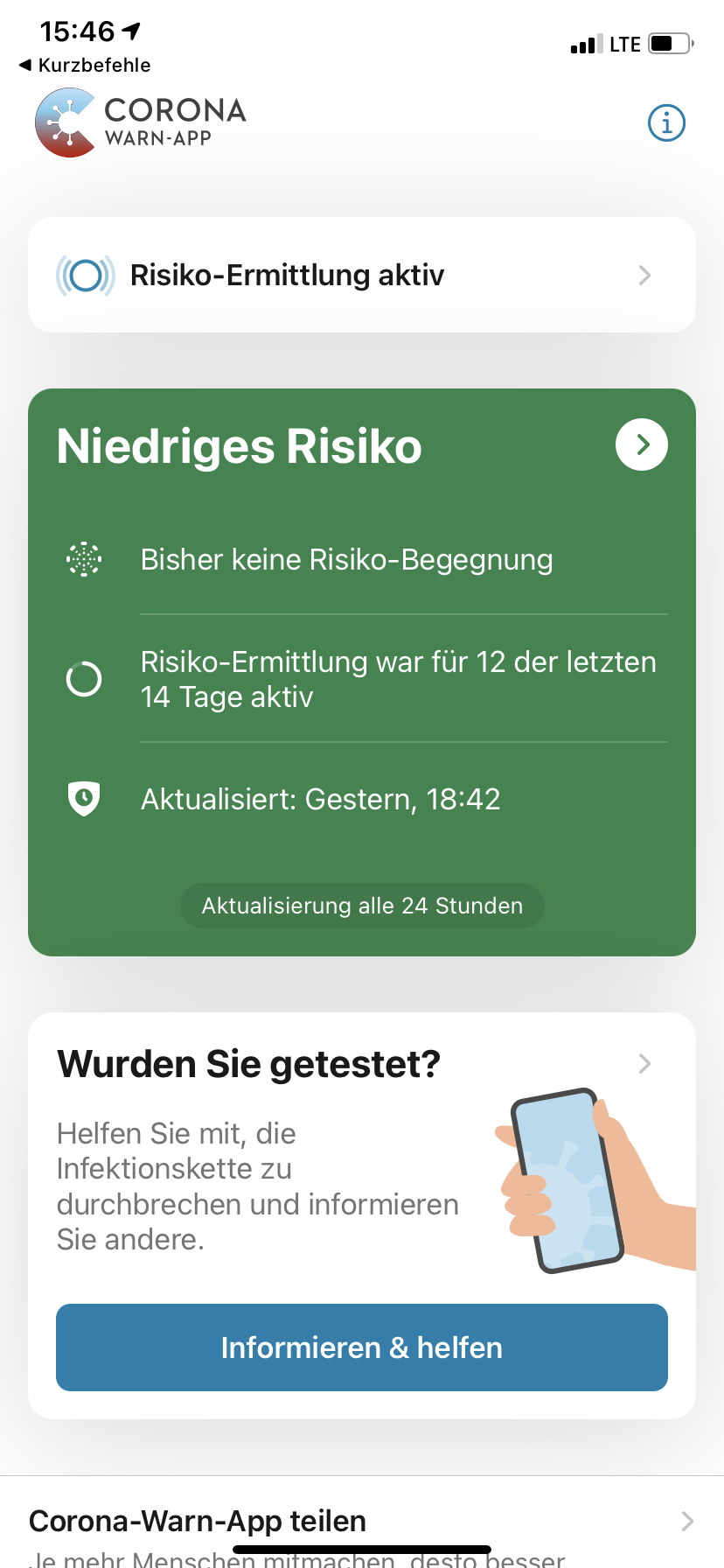 After opening the app it should show "Risiko-Ermittlung dauerhaft aktiv"