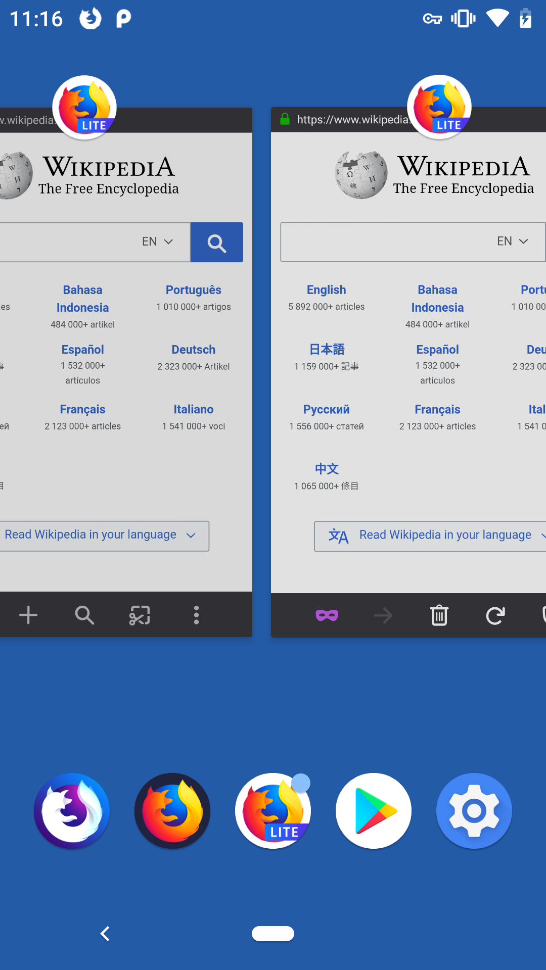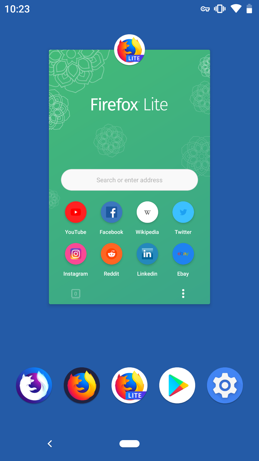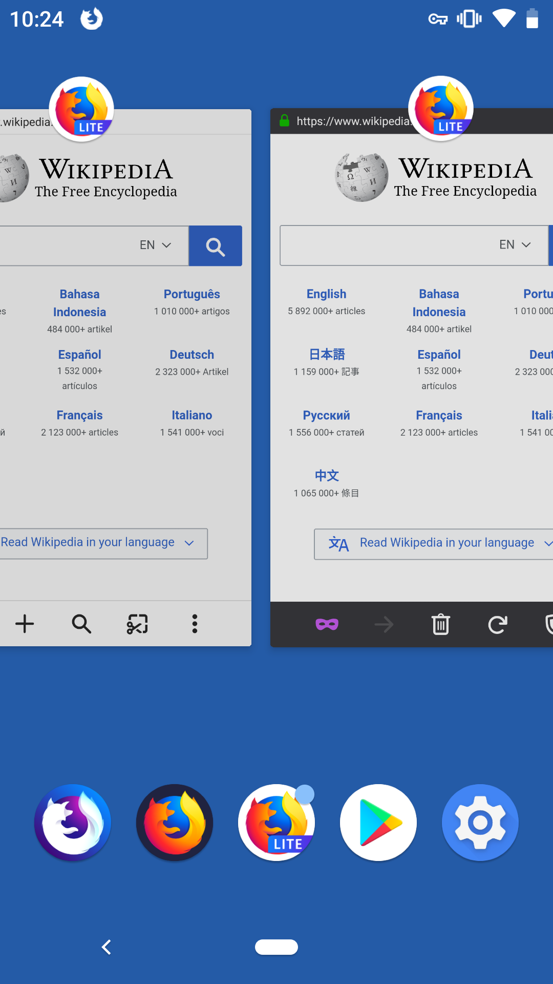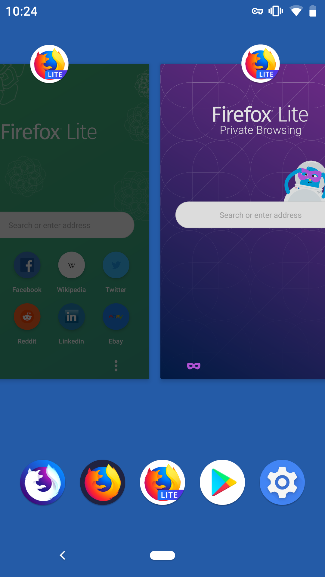 When I initially launch Firefox Lite, the app switcher looks like this. So far so good.