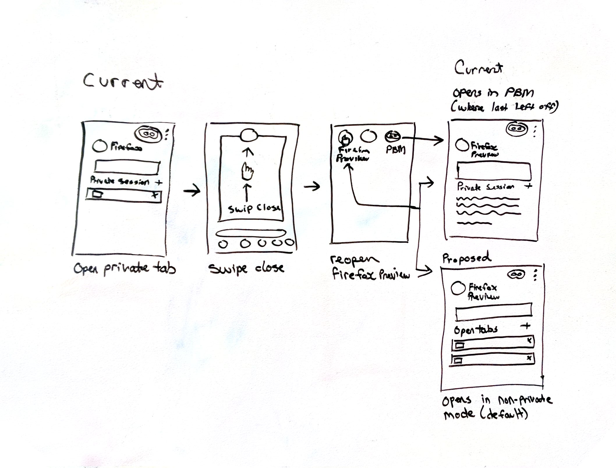The previous behavior was fine for me. I use desktop Firefox in private browsing mode permanently, and the Fenix toggle replicated that functionality on Android. With this feature gone, I have to open Fenix, switch to private browsing each time, and then continue.