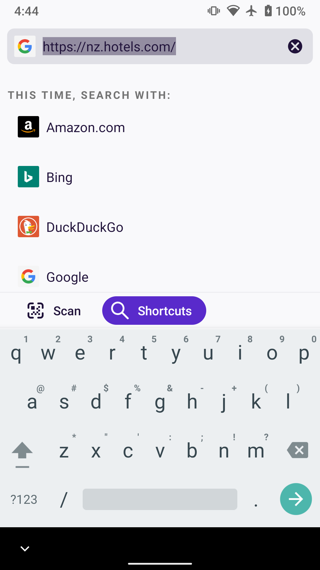 long press URL or suggestion-> URL+suggestion is selected & opens up "copy-paste-share" pop-up menu.