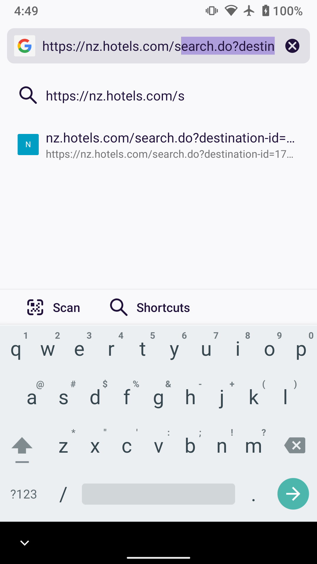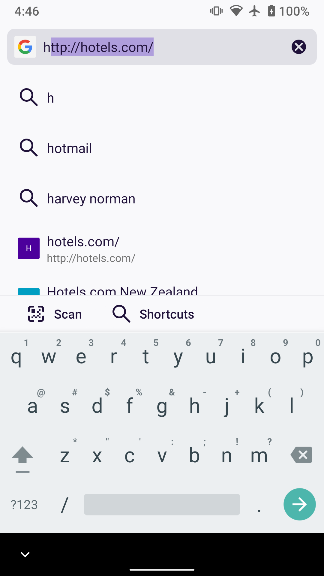 For instance, if the hotels.com main page is currently open, then the URL bar should show: