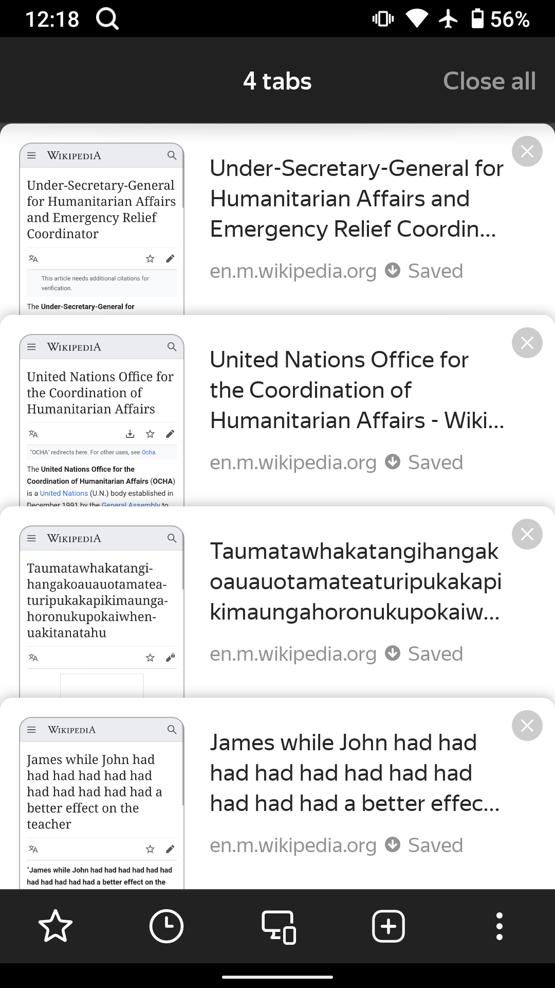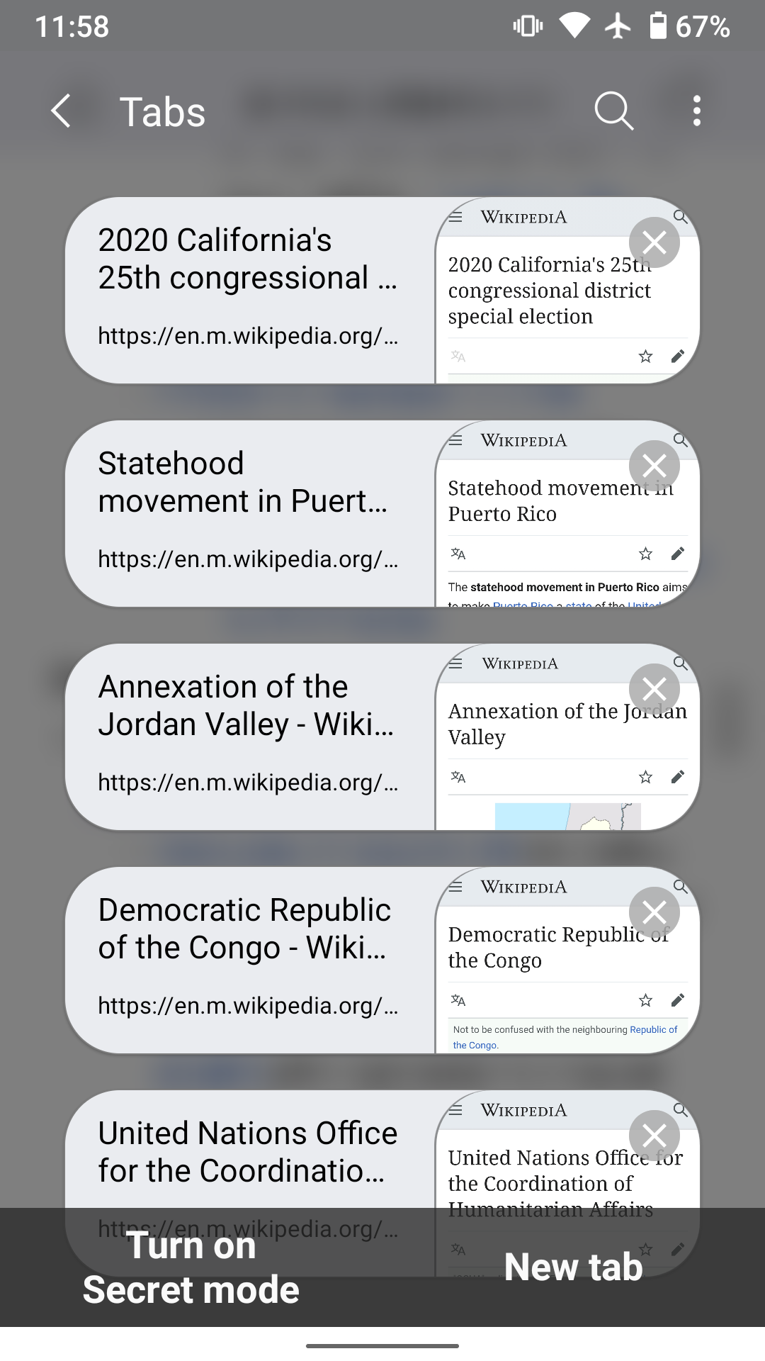 For reference, here are examples of other browsers that display the tab’s page name and URLs in a list view: