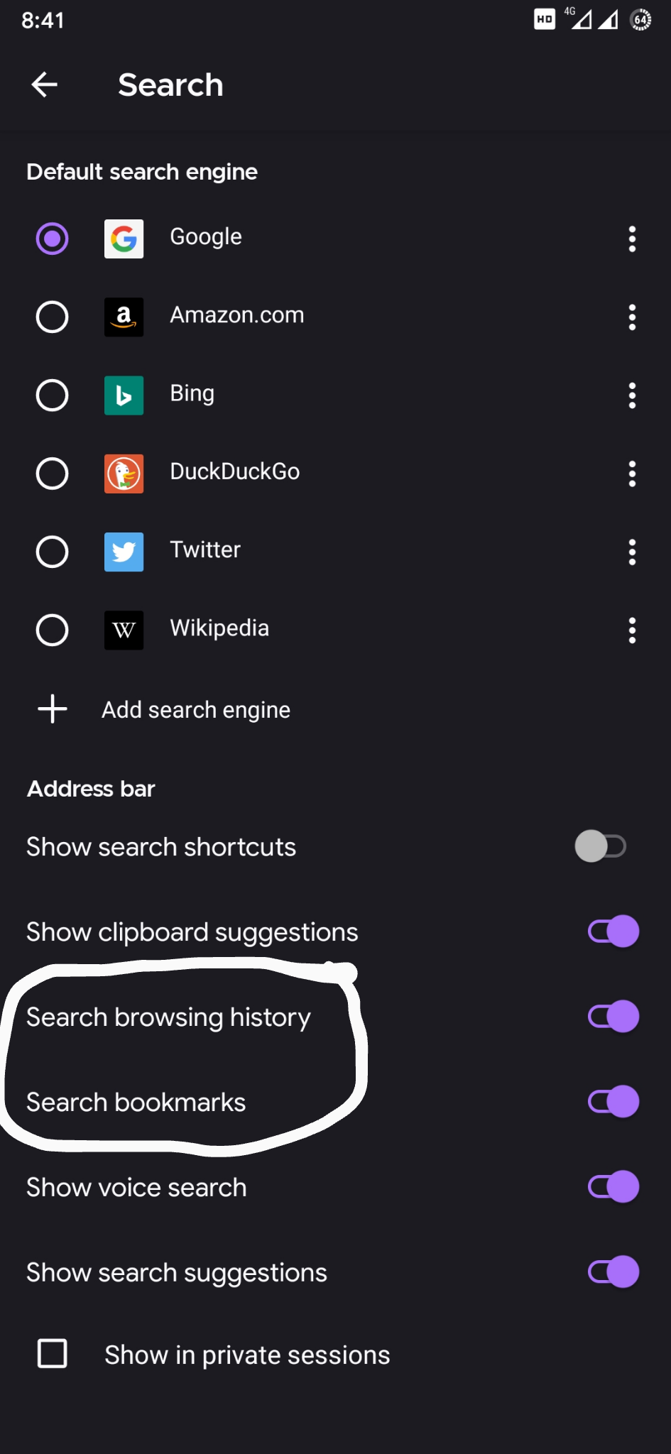 First tap on address bar: show bookmarks list