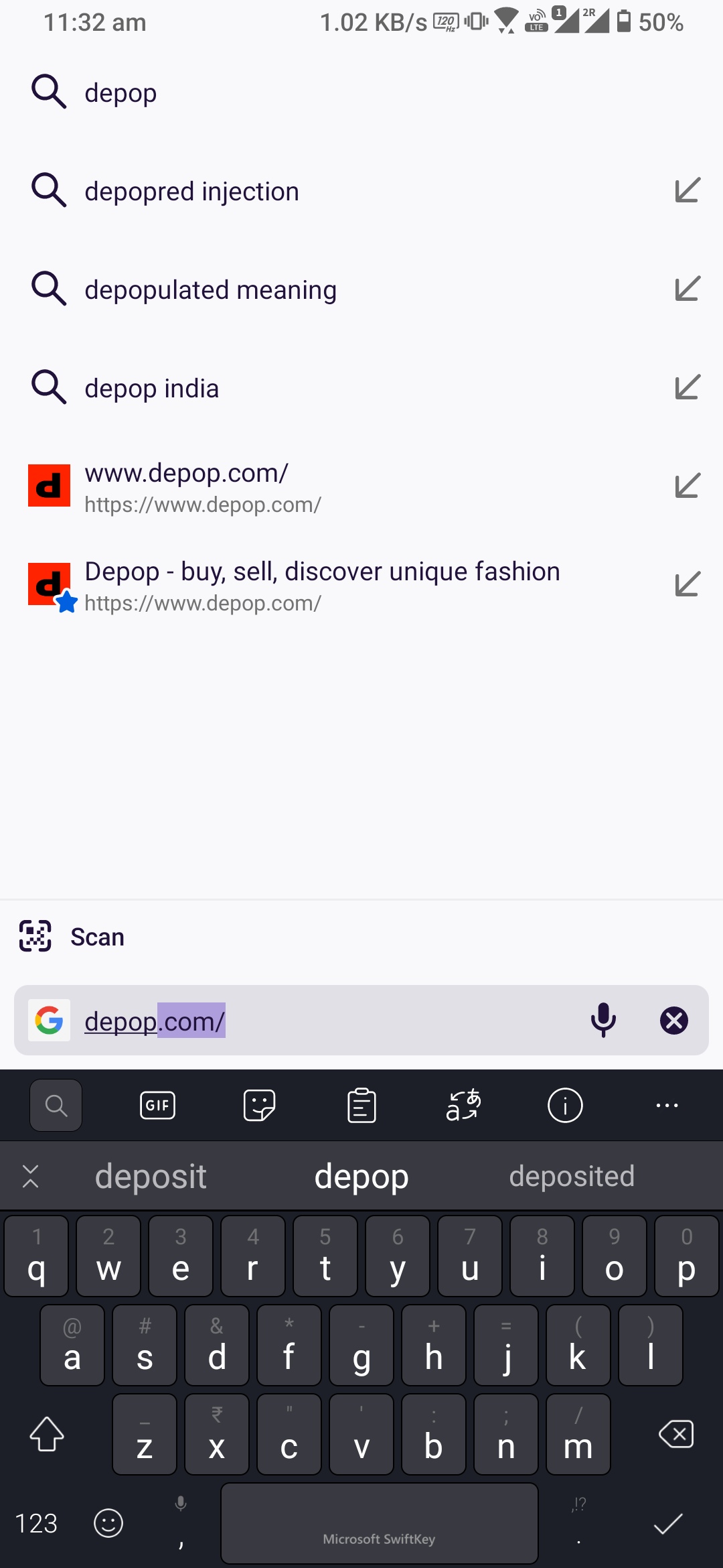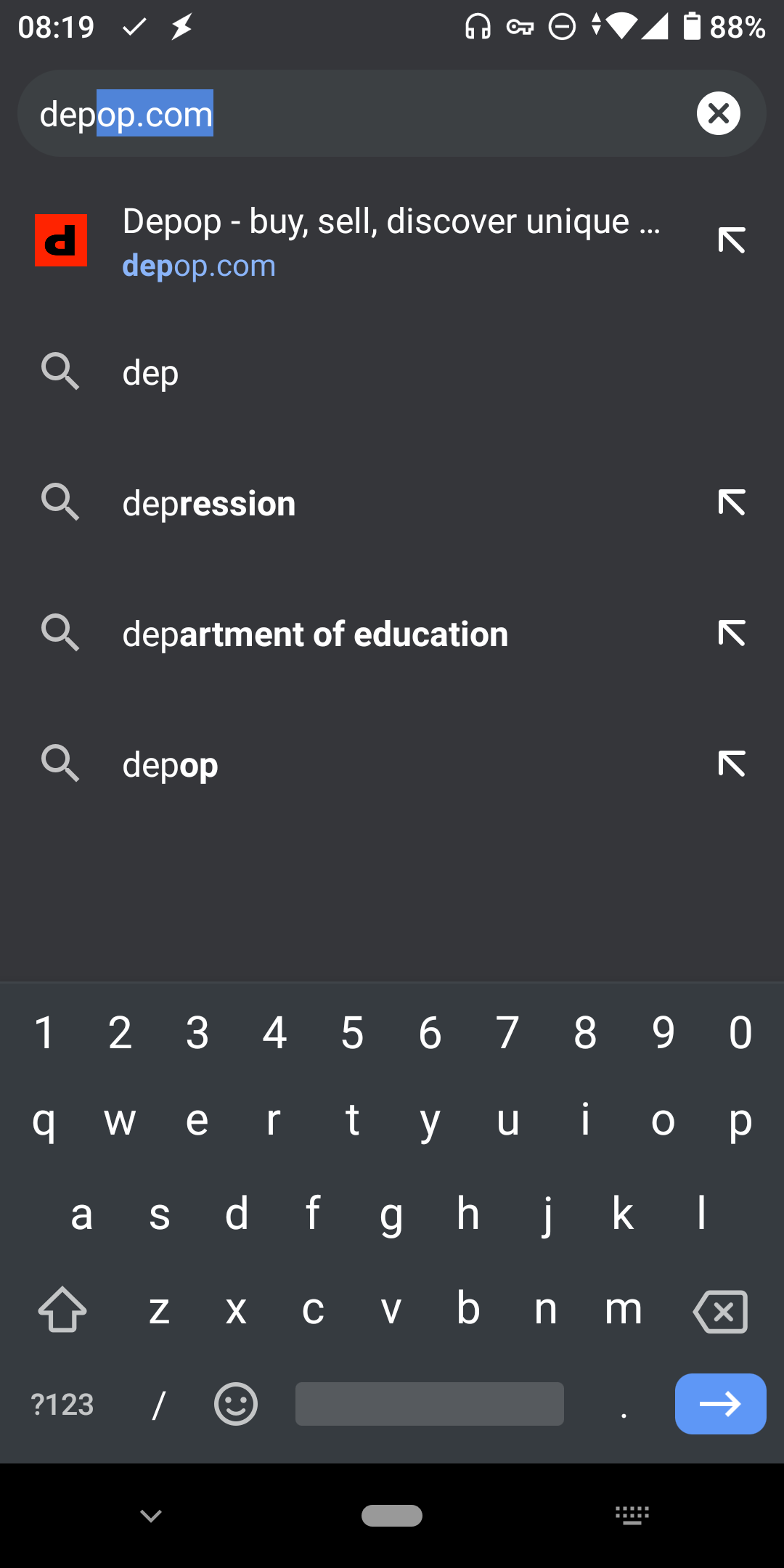 After typing the first few letters, depop.com should be autocompleted in the address bar. This should happen regardless of the 'Search browsing history' option.