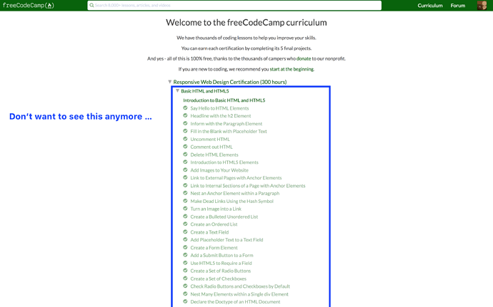 the curriculum page always opens the basic html section of the curriculum. shouldn't it open my recent track or at least the section im in?