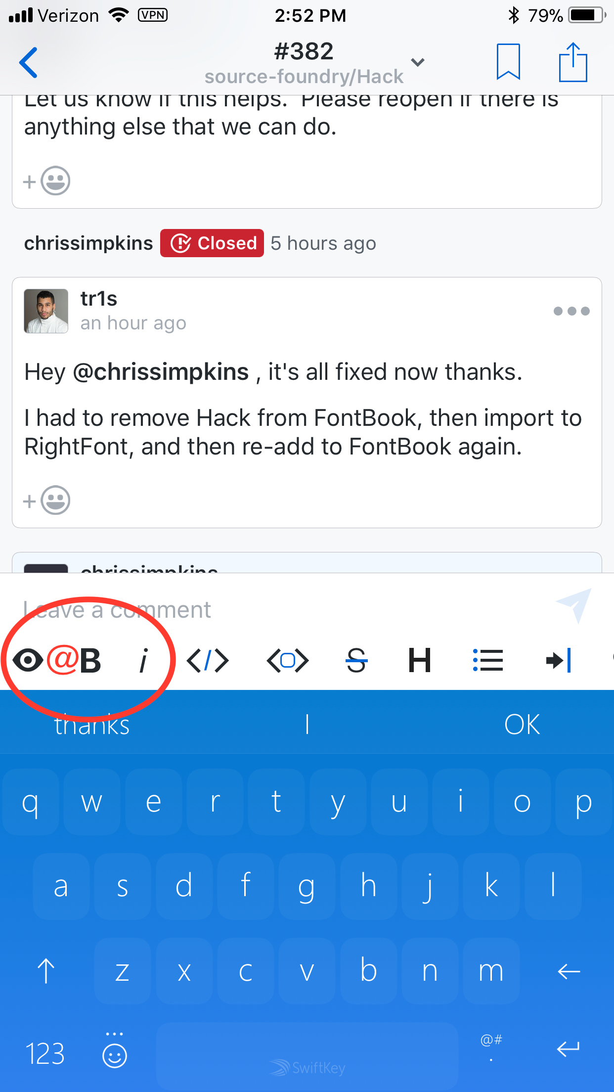This is a request for an optional @ symbol in the shortcut bar. Some 3rd party keyboards make this commonly used character less accessible than it should be for GitHub...