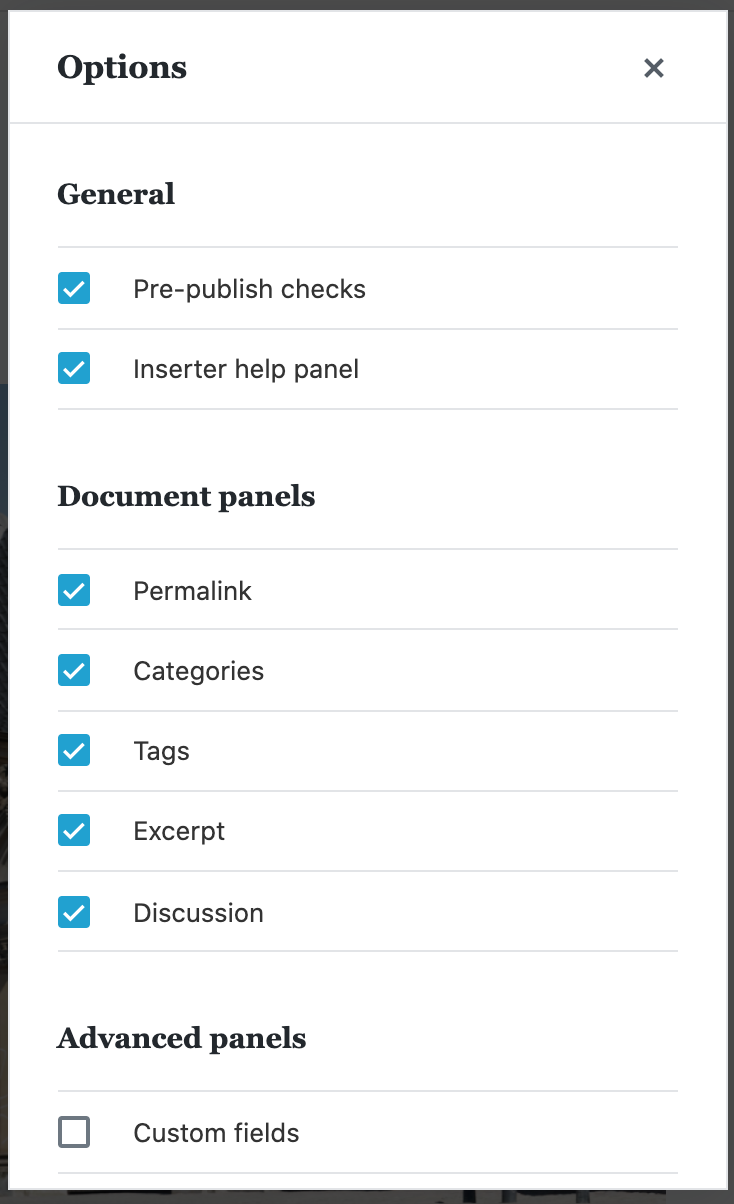Thanks for the answer! That's funny, I'm using Wordpress 5.4.2 this is what shows in the Options panel. Any ideas?