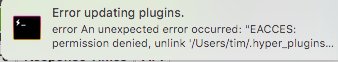 An error occurred writing to /Users/me/.hyper_plugins/package.json