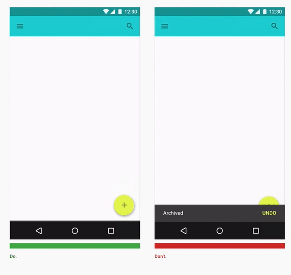 According to the material design spec, the toast should push the fab up. Which is something the toast is not doing right now.