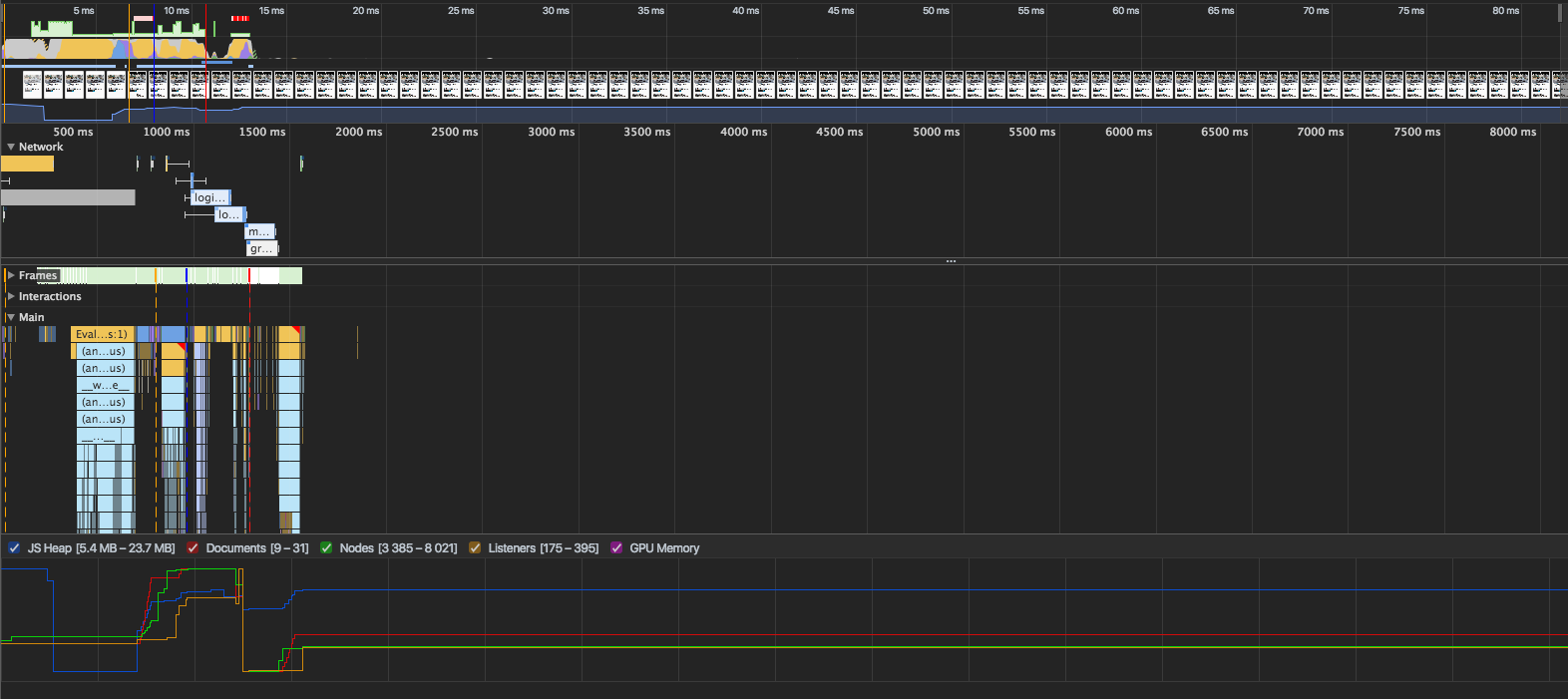 As an aside, my guess for why you weren't seeing the differences when you recorded the traces with chrome devtools would be that lighthouse (I believe) emulates a slow network by default, so the 4.7MB js file tool a really long time to download. On a fast network, the download time is much shorter and we did not hit that edge case. You can load the traces you recorded through lighthouse in devtools and see the difference.