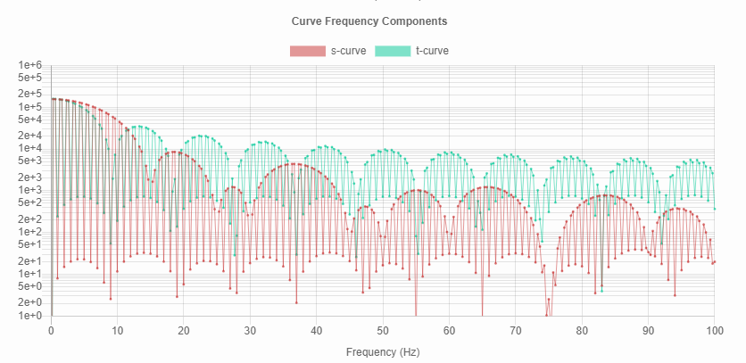 With these settings, the trapezoidal curve will be smoother for a system with a resonant frequency of 10Hz, and the s-curve will be smoother for resonant frequencies of 16Hz.