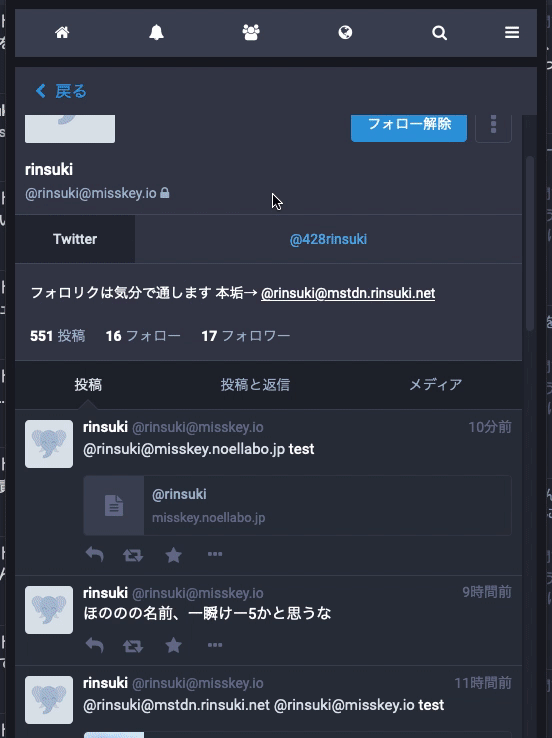 あーっそうじゃなくて、(Mastodon側でリンクがメンションで認識されないと)MastodonのWebUI内のプロフィールページで開けないという話
