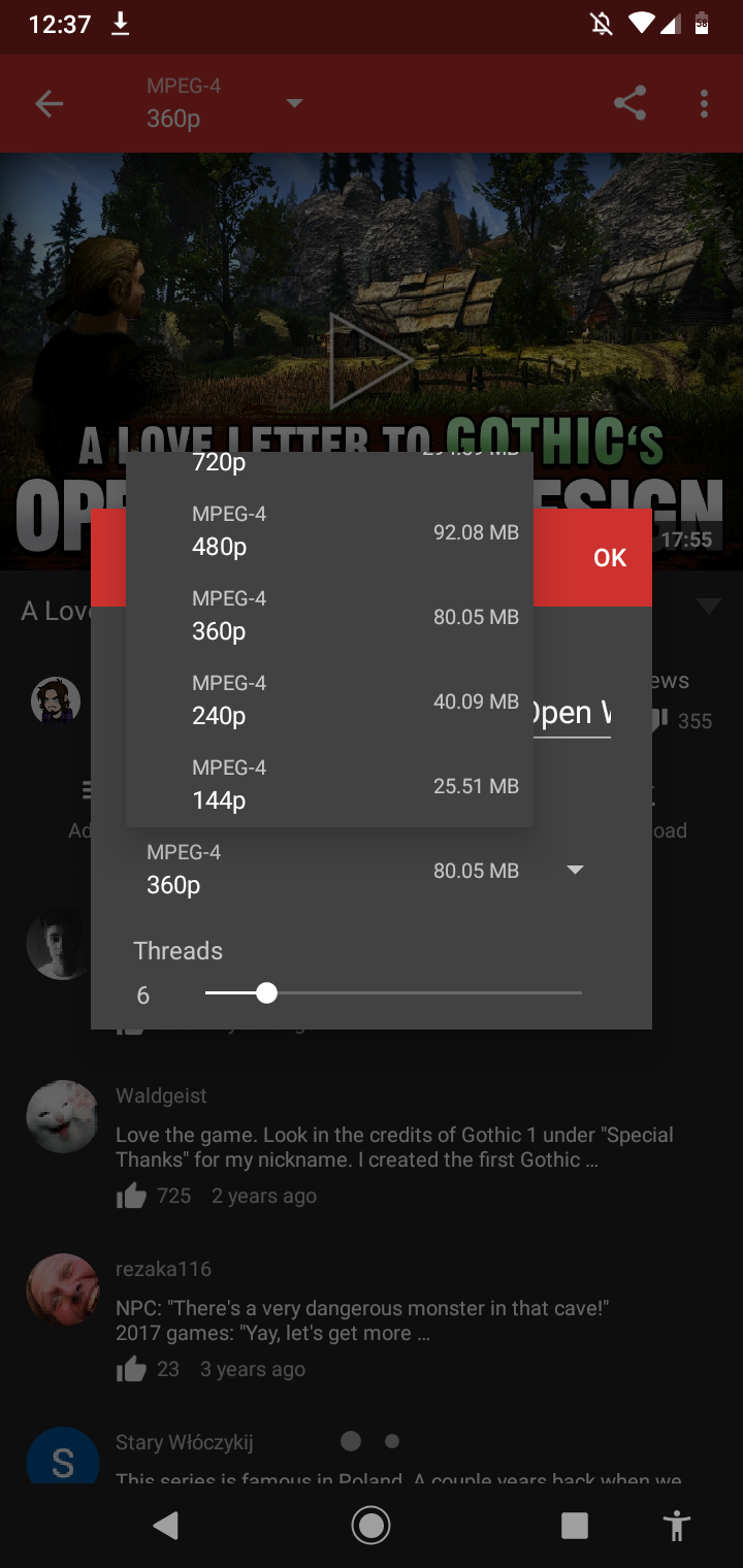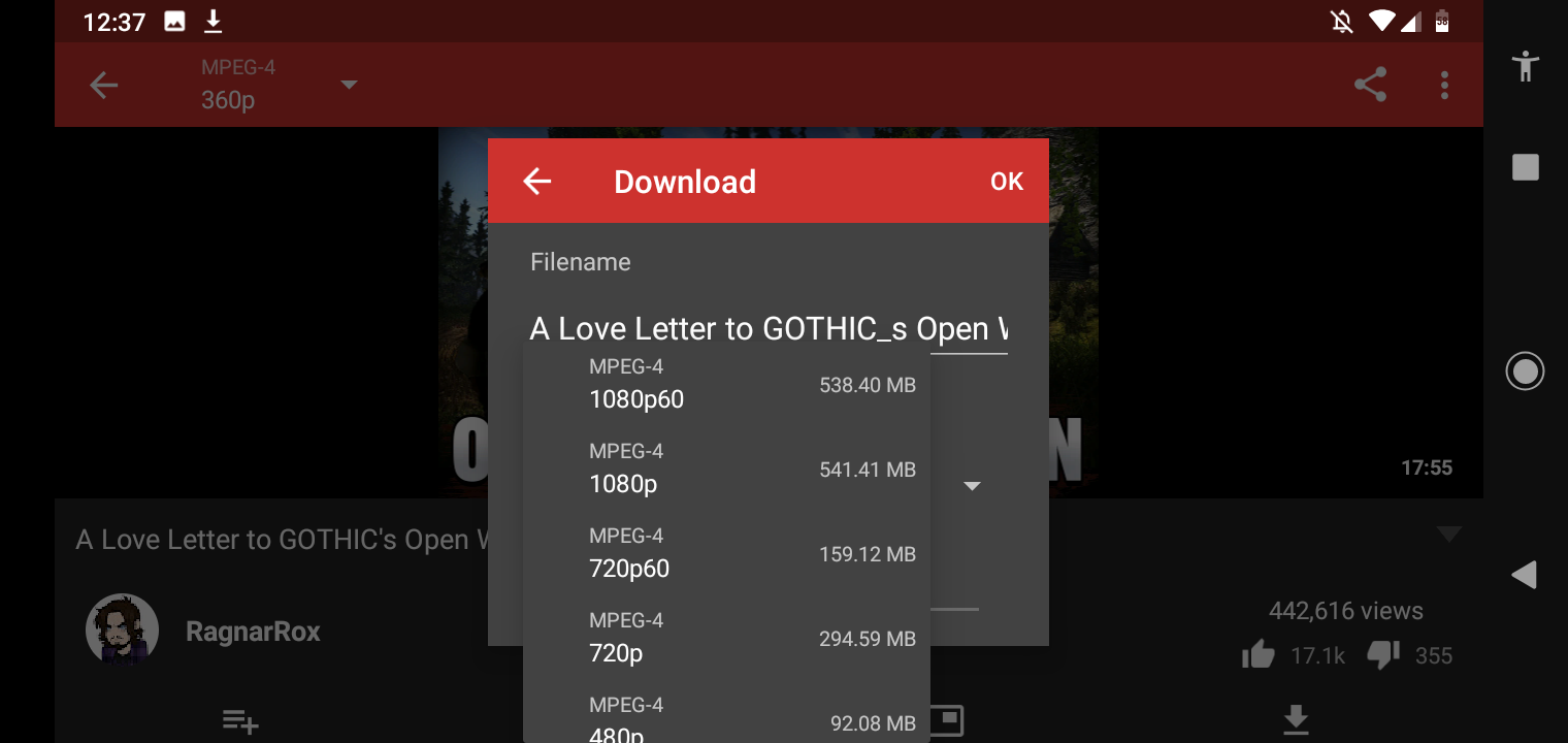 When I try to download a video, the resolution selection window is cut off and doesn't allow me to scroll