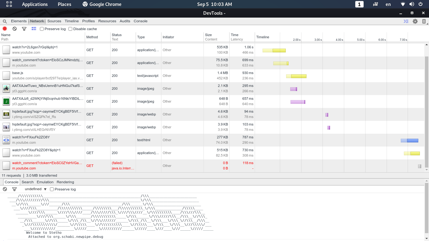 Anyway, could you install a debug version (RC of v0.19.4 should work I think), connect your phone to your PC through USB, open Chrome, go to chrome://inspect, open NewPipe on your phone, select that NewPipe instance in Chrome, go to the Network tab, try to reproduce the issue, and once you've successfully reproduced the issue, send me the HAR?