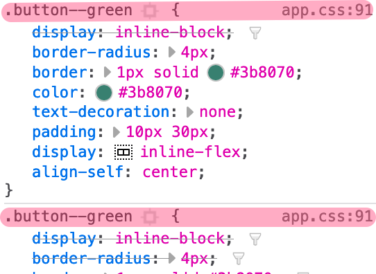 .button--green is applied twice, both from line 91 in app.css.rel="preload" and twice with rel="stylesheet".universal to spa, refresh the iframed app, and note that app.css now appears once as preload and once as stylesheet and the button now has .button--green applied once.Common CSS should only be included once