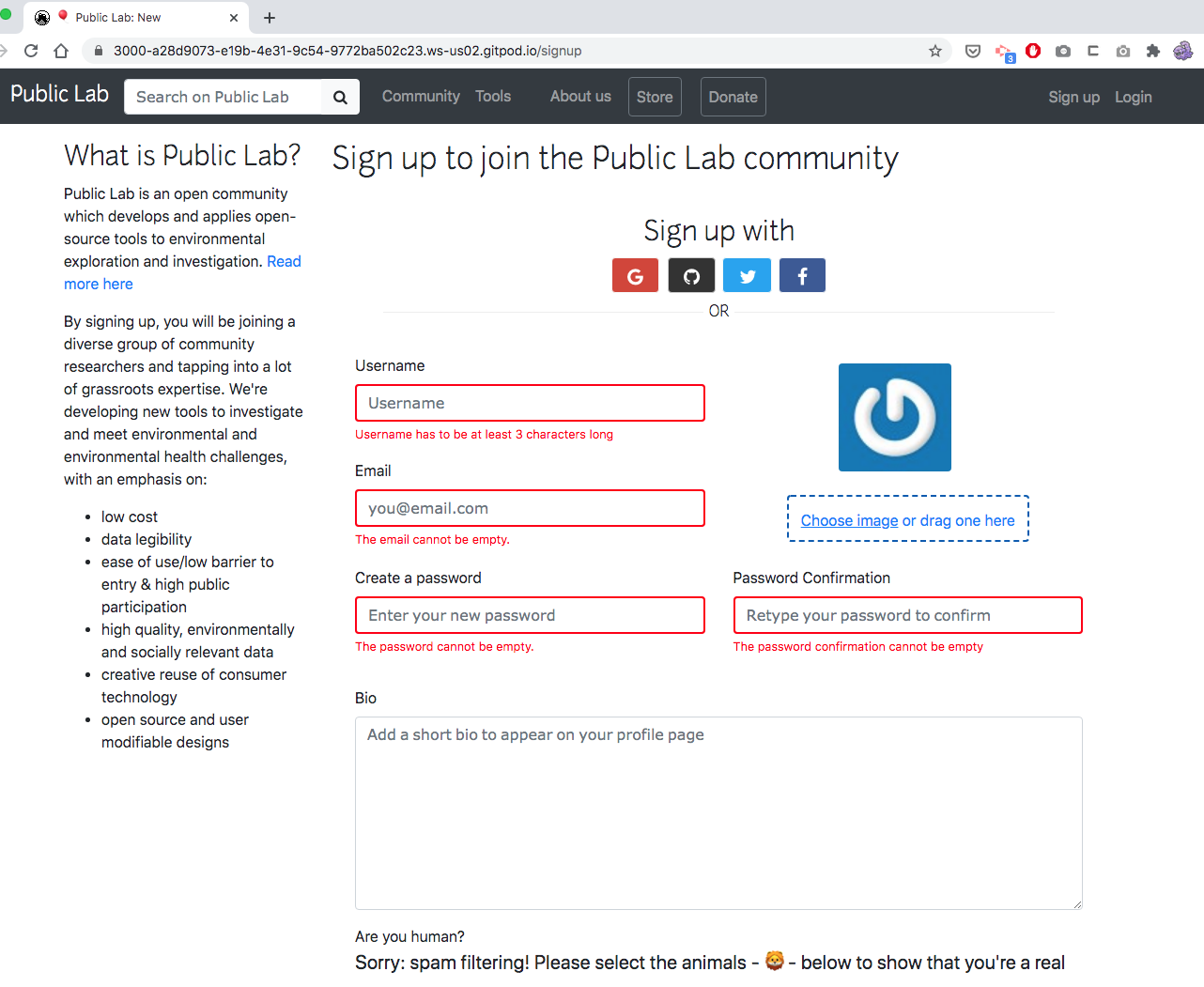 https://github.com/publiclab/plots2/blob/8c9c39da0152d5a965e7eb77697c056ca3d45111/test/system/signup_form_test.rb has your orig system test code. i'm tsting this manually now in gitpod too.