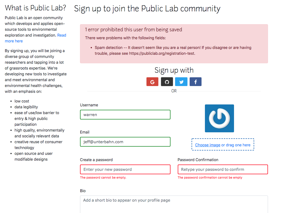 Hi Shreyaa - could you try getting a version of the system test running on the current code, and checking against that error Cess found - that submitting the signup form but failing the spam validation still creates a user?