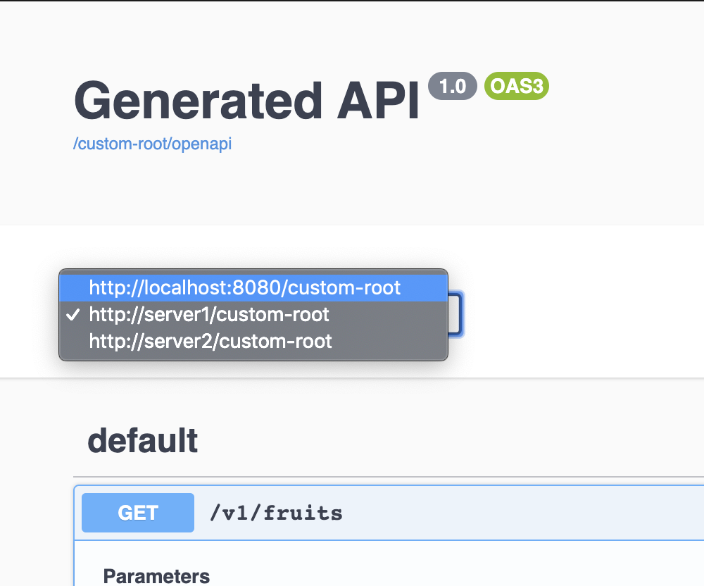 The reason I think the logic of adding the custom root path to the OpenAPI document is more complicated, is that there might already be one or more Server defined in the OpenAPI document. So adding another one due to the custom context-path may not always be correct. It's possible to use OpenAPI annotations, and it's also possible to include a static OpenAPI file in the app that contains one or more Server. What would that mean for this use-case?