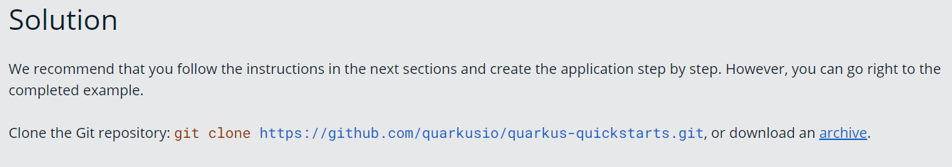 Even the solution section is different the guides, I oversee when creating the issue but it often contains a sentence explaining what's inside the quickstart and sometimes link to multiple quickstarts.