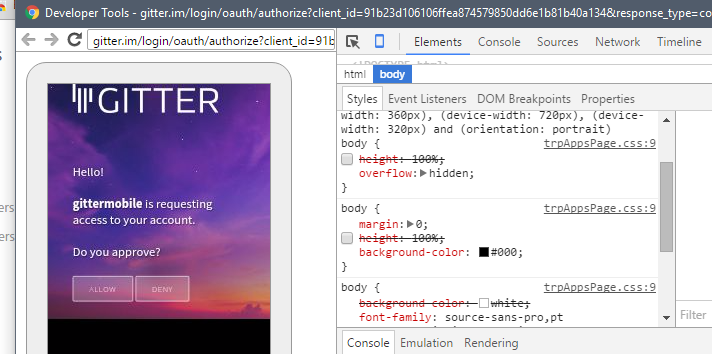 @satya164 yup, it does. But I still cant load gitter.im site. It loads welcome screen, then I'm login through GitHub and redirecting back, but it doesn't loads. And when I'm trying to visit it again with my cookies, it won't load.
