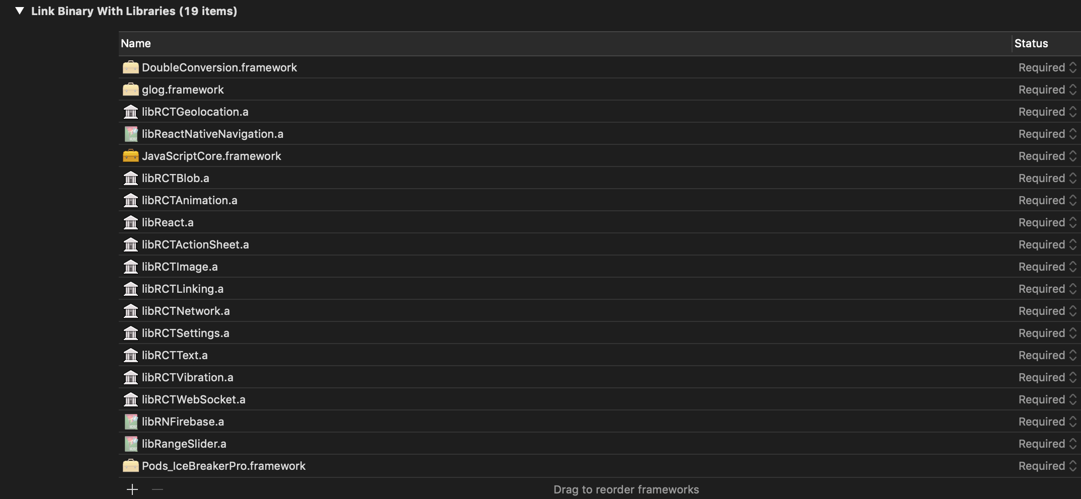 @omerlh @dnsmob Actually, I downgrade RN to 0.55.x, it turns out the same problem. Just add these missing frameworks. It would be fine.