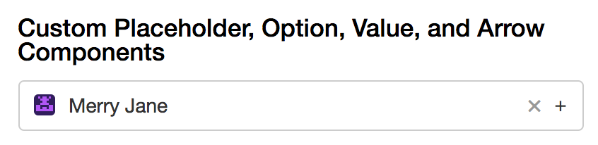 Go to http://jedwatson.github.io/react-select/ and find the "Custom Placeholder, Option, Value, and Arrow Components" example.