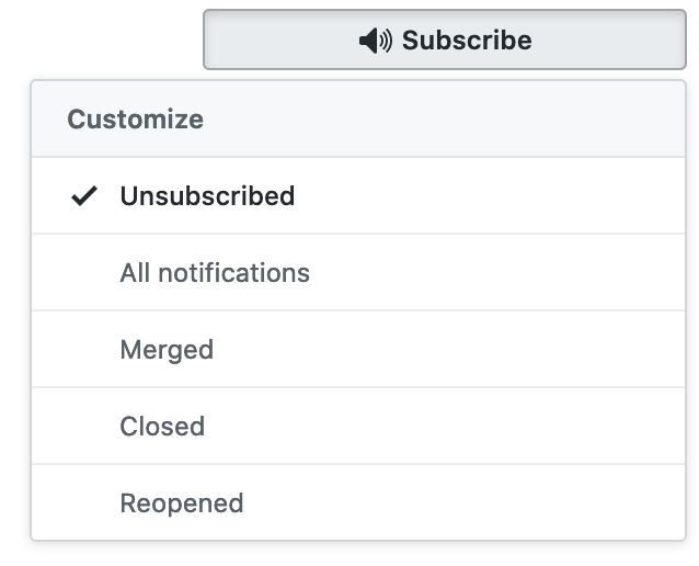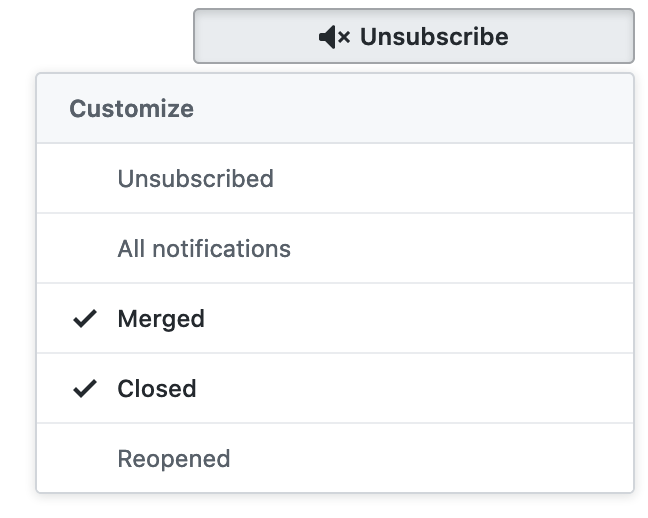 merged, closed, reopenedAny other options and the ability to undo this are available in the Customize modal anyway.