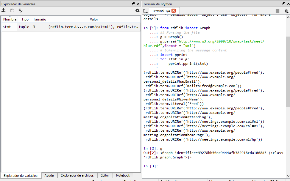 g.parse("http://www.w3.org/2000/10/swap/test/meet/blue.rdf",format = "xml")tokenizing the message content