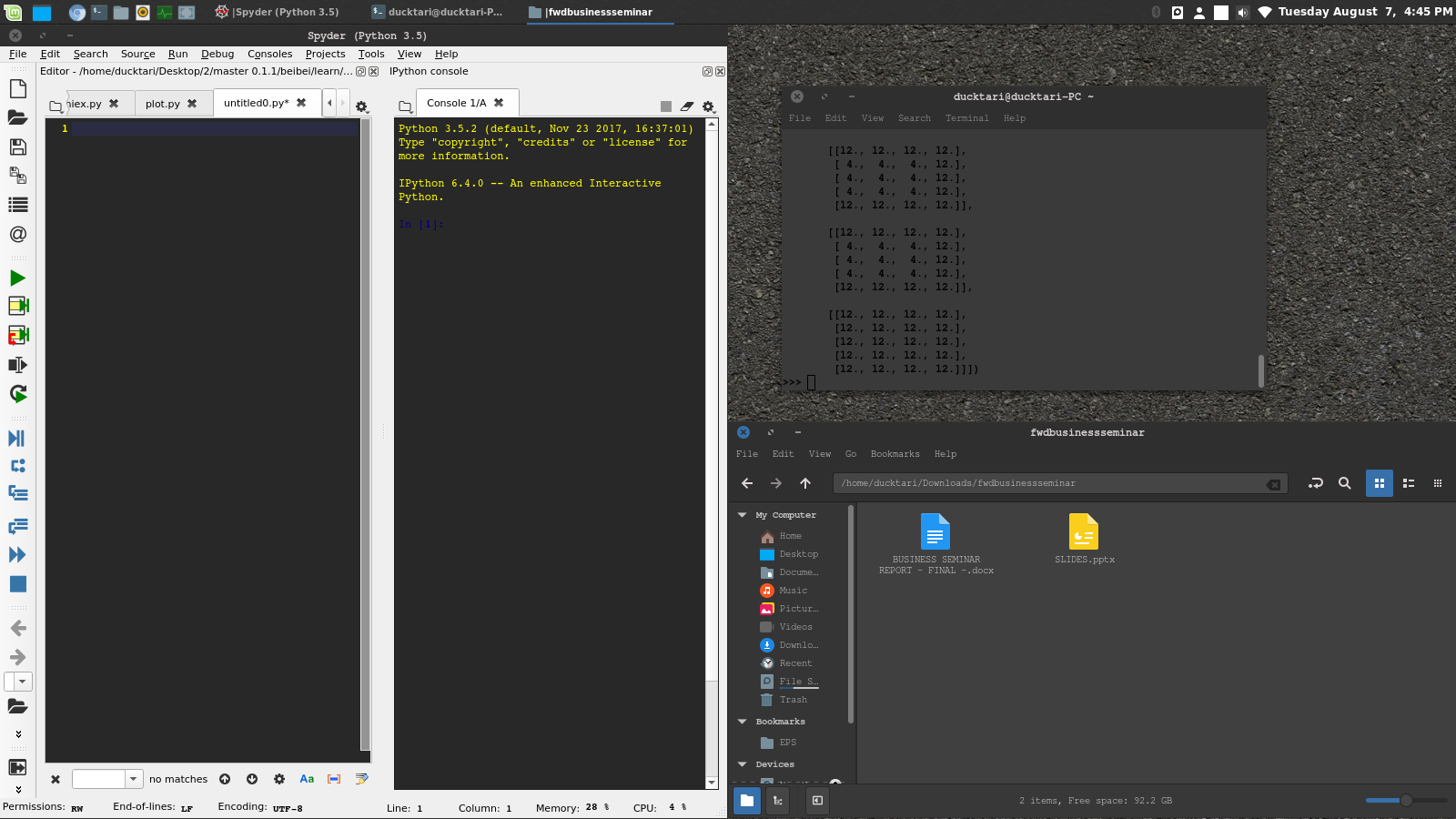 @Akyshnik I'm new to Linux and programming in general. The python course I'm taking asked me to install anaconda and use spyder as an IDE. I would like to use the dark theme to increase the amount of time I can look at the screen without eye strain becoming a problem, but I'm having some issues getting this to work. I'm running a centos7 virtual machine inside of windows7, I'm using anaconda 4.4.0, Sypder 3.1.4, python 3.6.1 and pretty sure I'm also using pyqt 5.6.0.