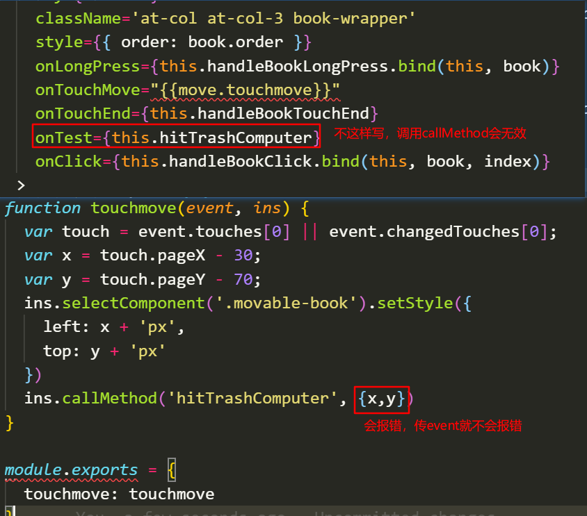 我在wxs还遇到调用自定义方法的情景,如果直接按照官网的方法使用,是不行的。奇怪的是在组件随便写个事件绑定了那个方法后就可以使用了。