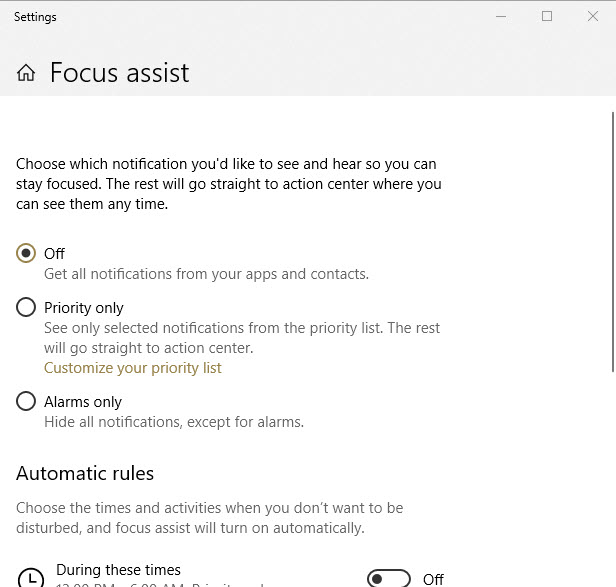With Windows 1803 Microsoft added a new Feature to Windows, the focus assist, also known as quiet hours. Before the update, you could just activate and deactivate the quiet hours. With the new Version, you have two options: only alarms, and with priority. But with both options enabled, I still hear the telegram notification sound. Notifications are hidden.
