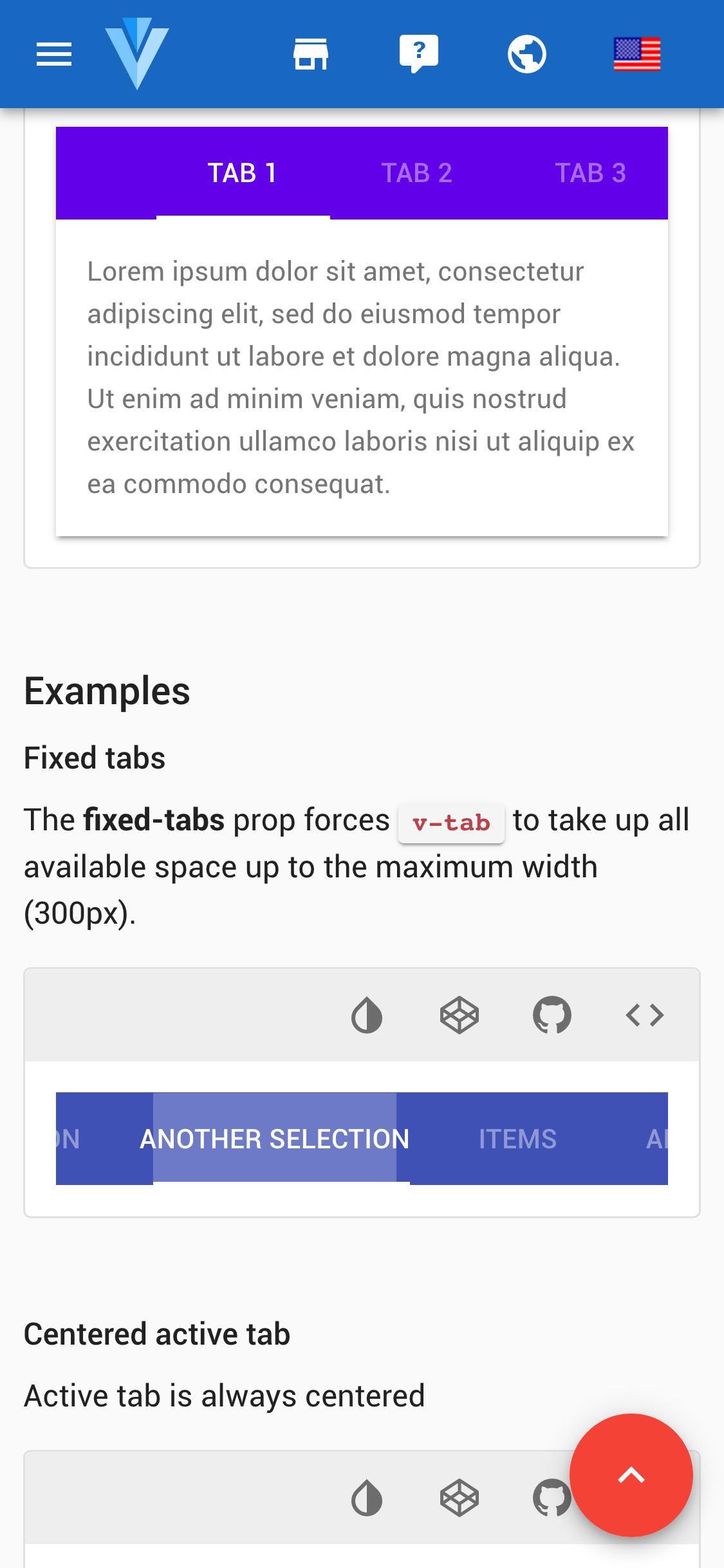 fixed-tabs.The Vuetify documentation seems to be affected by this, too: