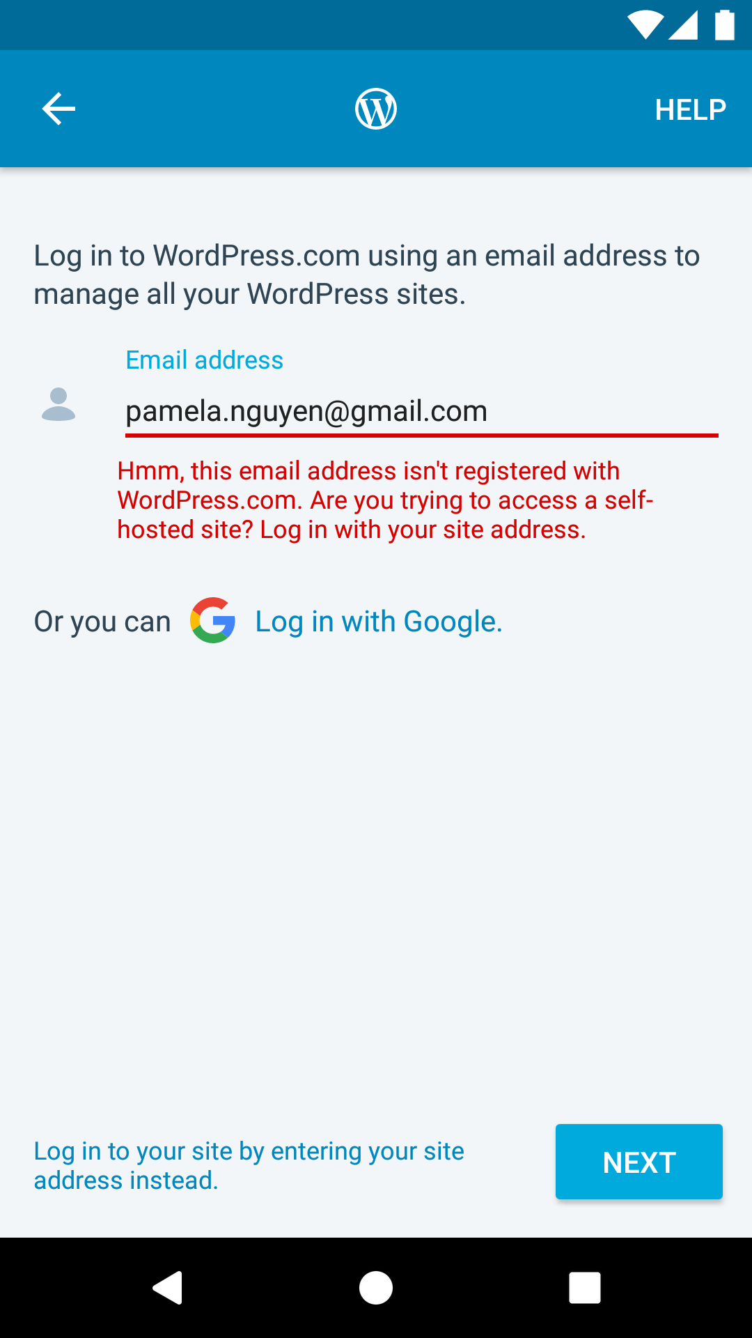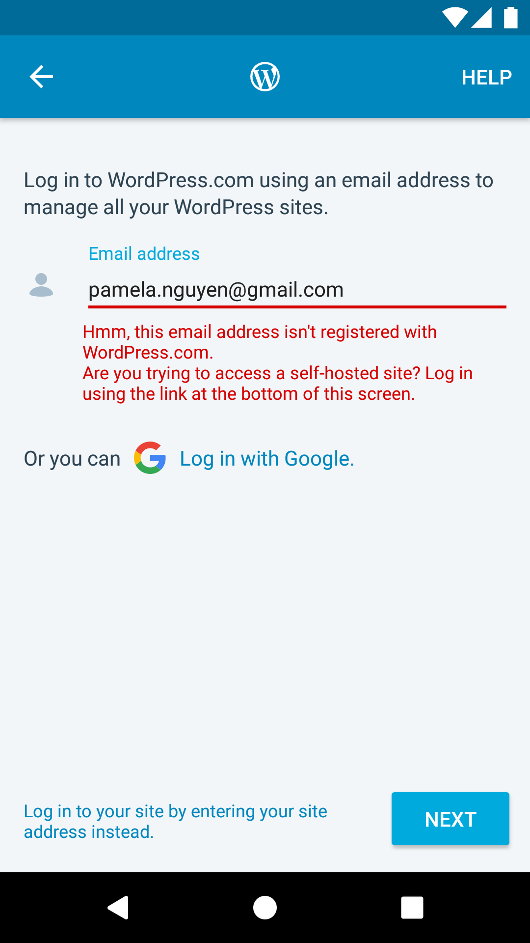 Are you trying to access a self-hosted site? Log in with your site address.