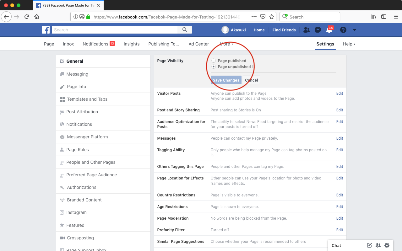 This came up again in 12.3 beta testing. I found that I was unable to connect Facebook or LinkedIn鈥攖he result was the same for each: "An error occurred". My test Facebook account does have a Page but it is unpublished (screenshot).