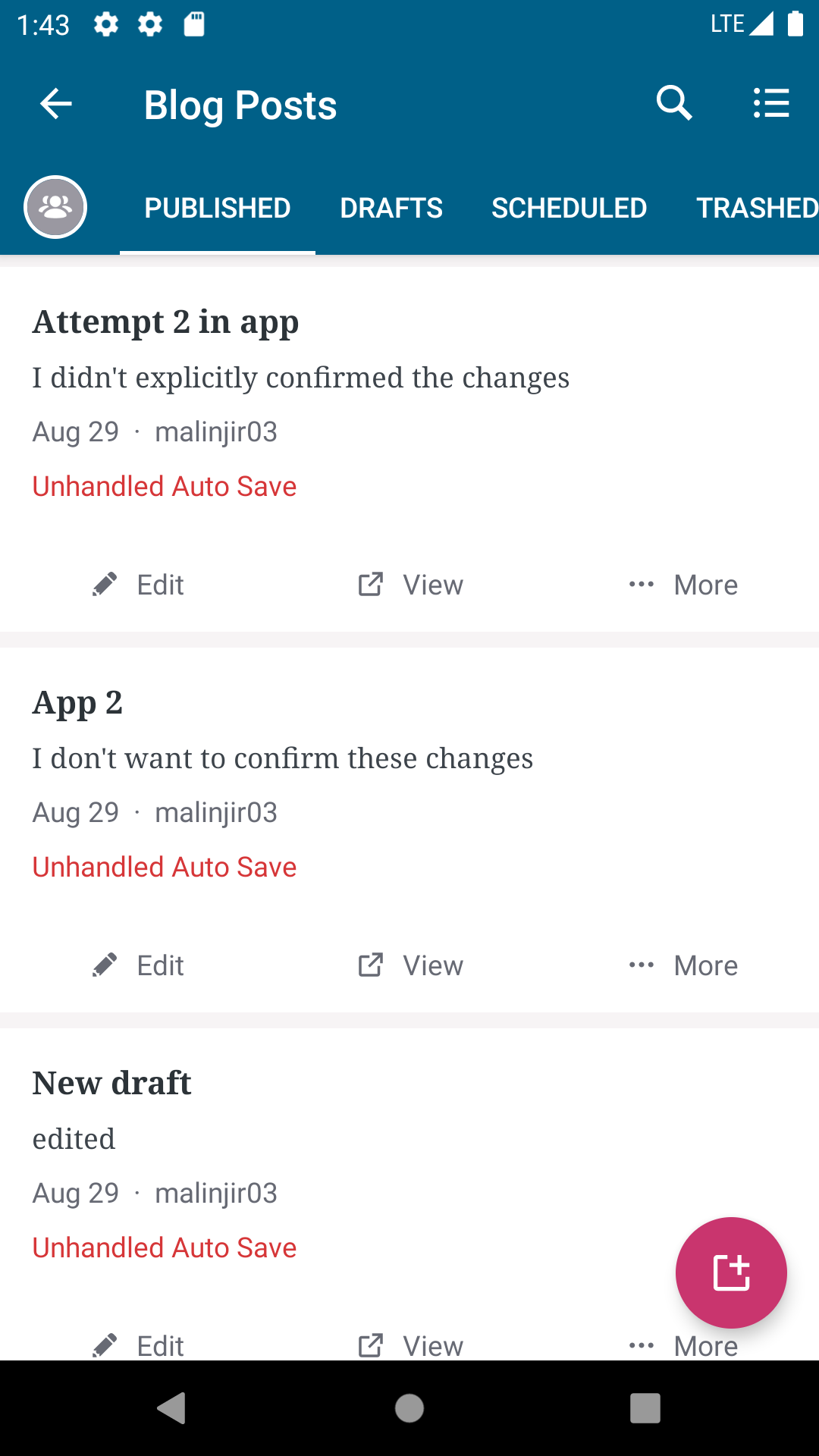 Calypso doesn't show any indication on the item in the post list -> it simply shows the dialog I posted above when the user clicks on a post with "unpublished/autosaved revision". We could theoretically follow the same pattern, but we thought it'd be nicer to be explicit since we already support "status" labels on post list items.