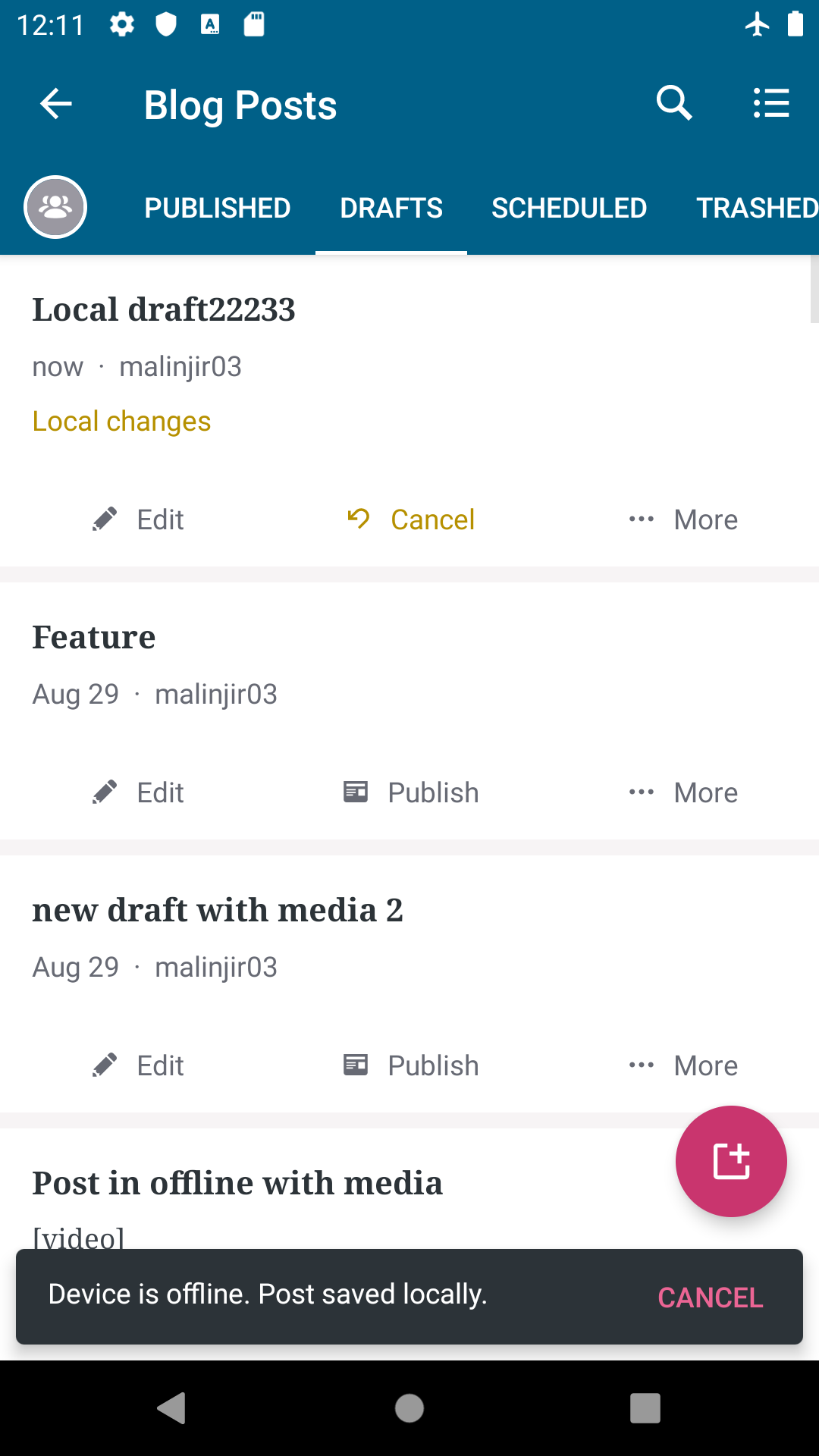 I decided to show the cancel action on all drafts which are pending auto-upload