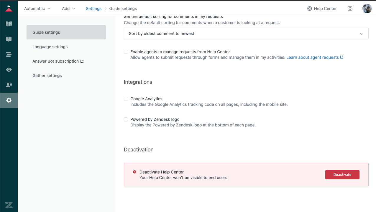 Aside: the "failed to get categories" error has come up before in the past (10919) when the Help Center was mistakenly deactivated in the automattic.zendesk.com settings, however, I tried checking this by logging in to that site and clicking the gear icon at the bottom of the left menu and it does appear to be active because there's an ominous looking "Deactivate" button at the bottom of the "Guide settings" section so I assume that means it is active. (screenshot)