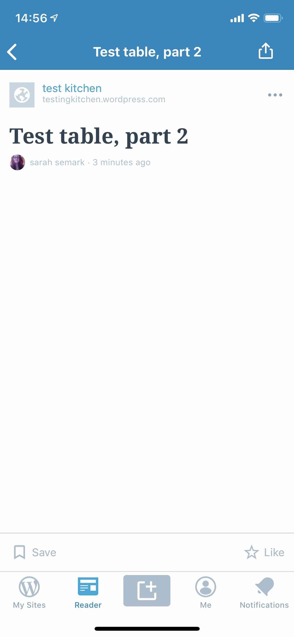 The table content appears in the preview, but doesn't appear at all when opening the whole post. I couldn't replicate this in the Reader on a desktop, so I'm guessing it's an iOS issue, but please do point me in the right direction if that's not the case!