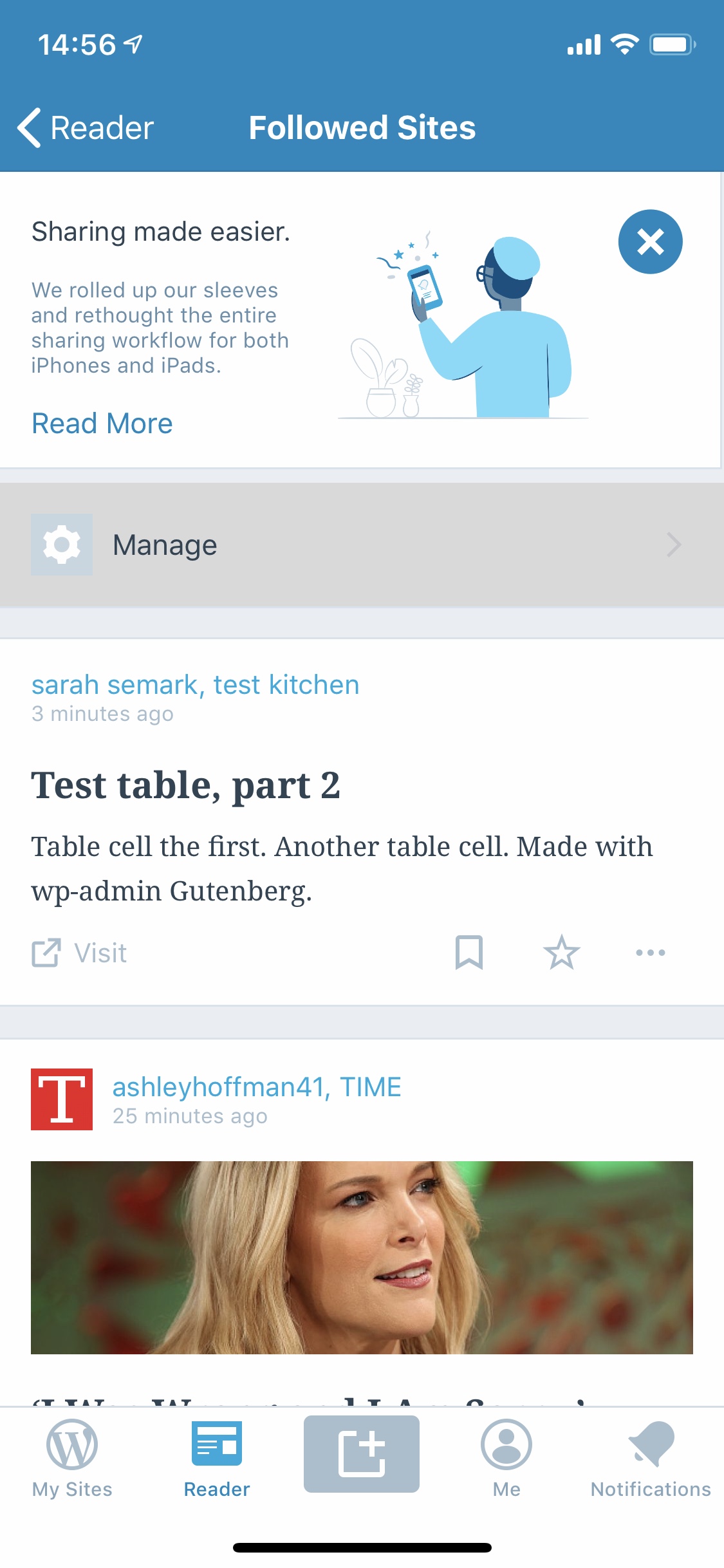 Next I opened the Reader using WP Internal 12.2.0.20190412 on iPhone 6S iOS 12.2: