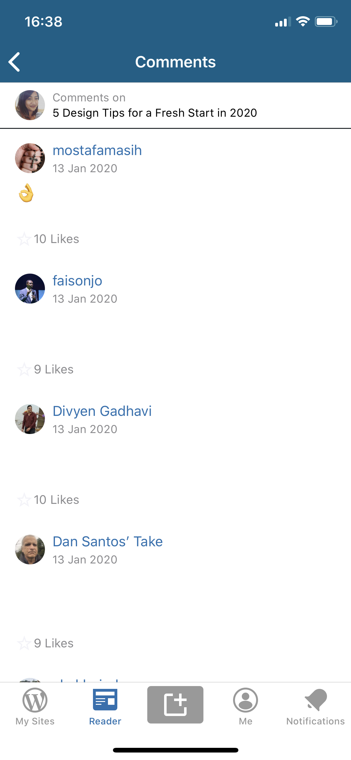 Reader comment text color doesn't update when you switch between dark and light mode, rendering the text invisible against the background. This is visible both in the Reader tab and when accessing all comments on a post through the Notifications tab.