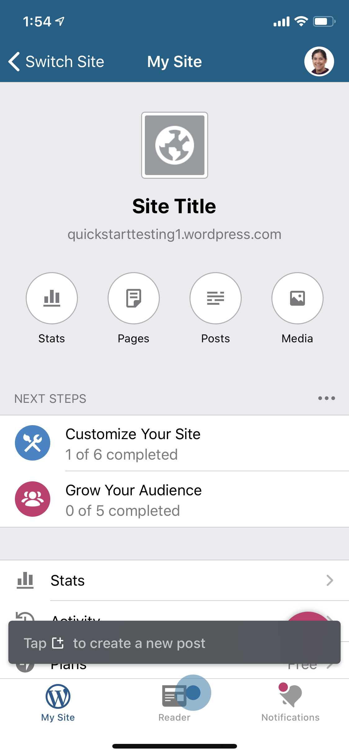 The "Publish a post" task should show an indicator on the Floating Action Button.