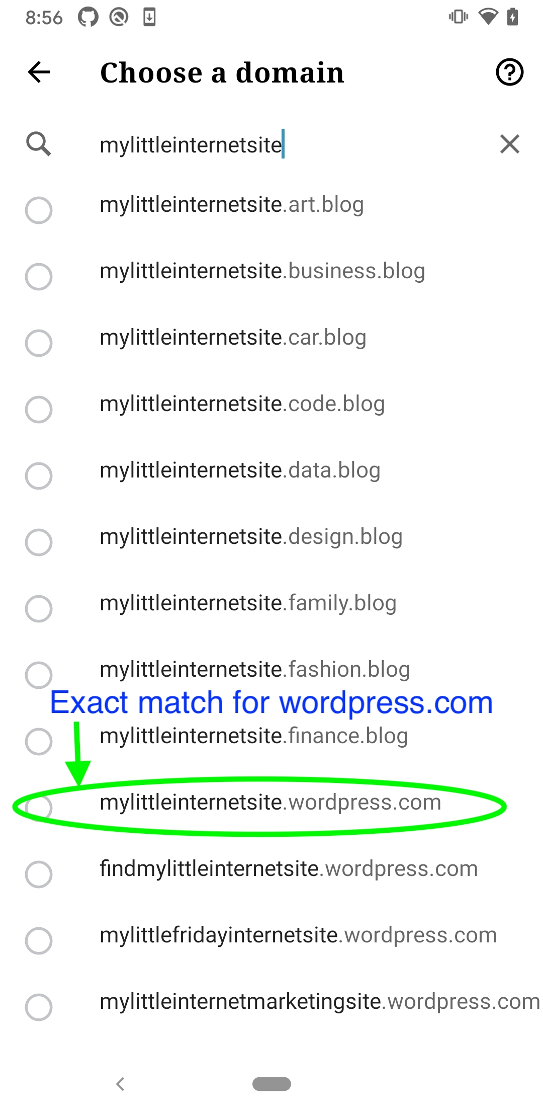 mylittleinternetsite.wordpress.com <- Exact Match