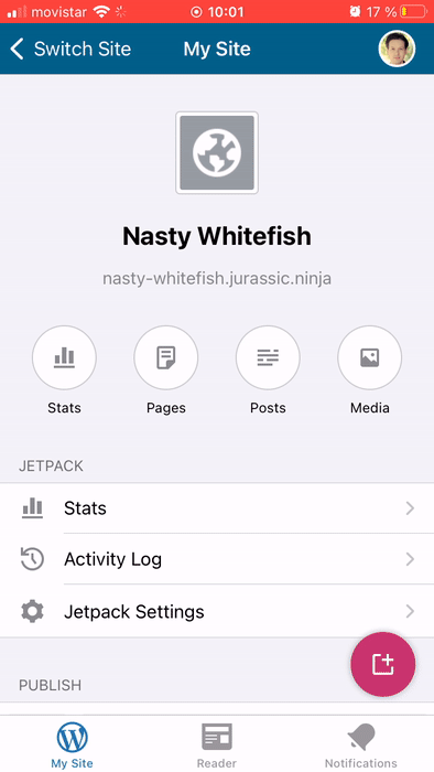 Sometimes, the Following button starts slightly off-screen and jumps into place as the screen loads. I reproduced this on an account where I follow a lot of sites, and couldn't reproduce on a site where I only follow one or two sites.